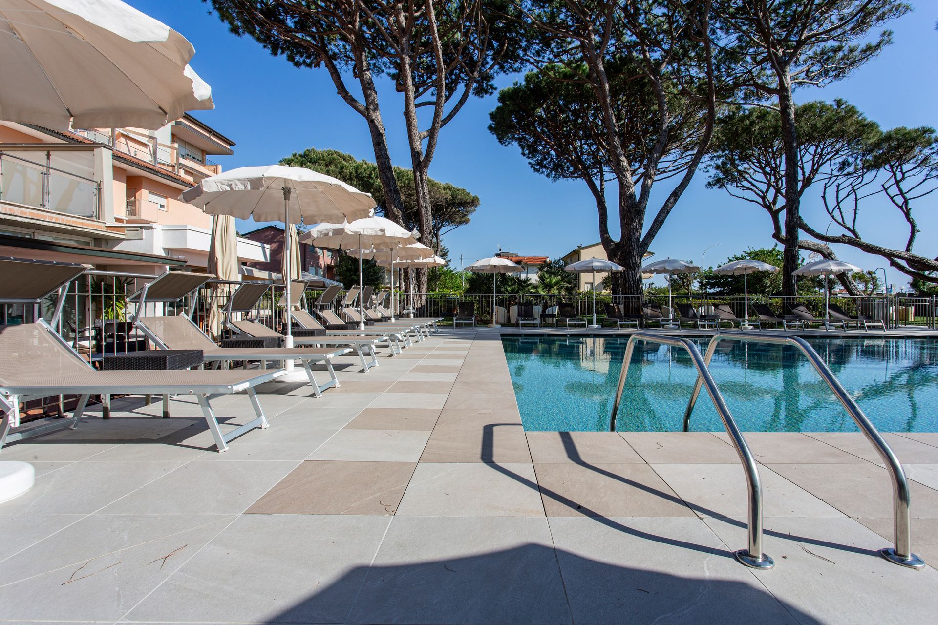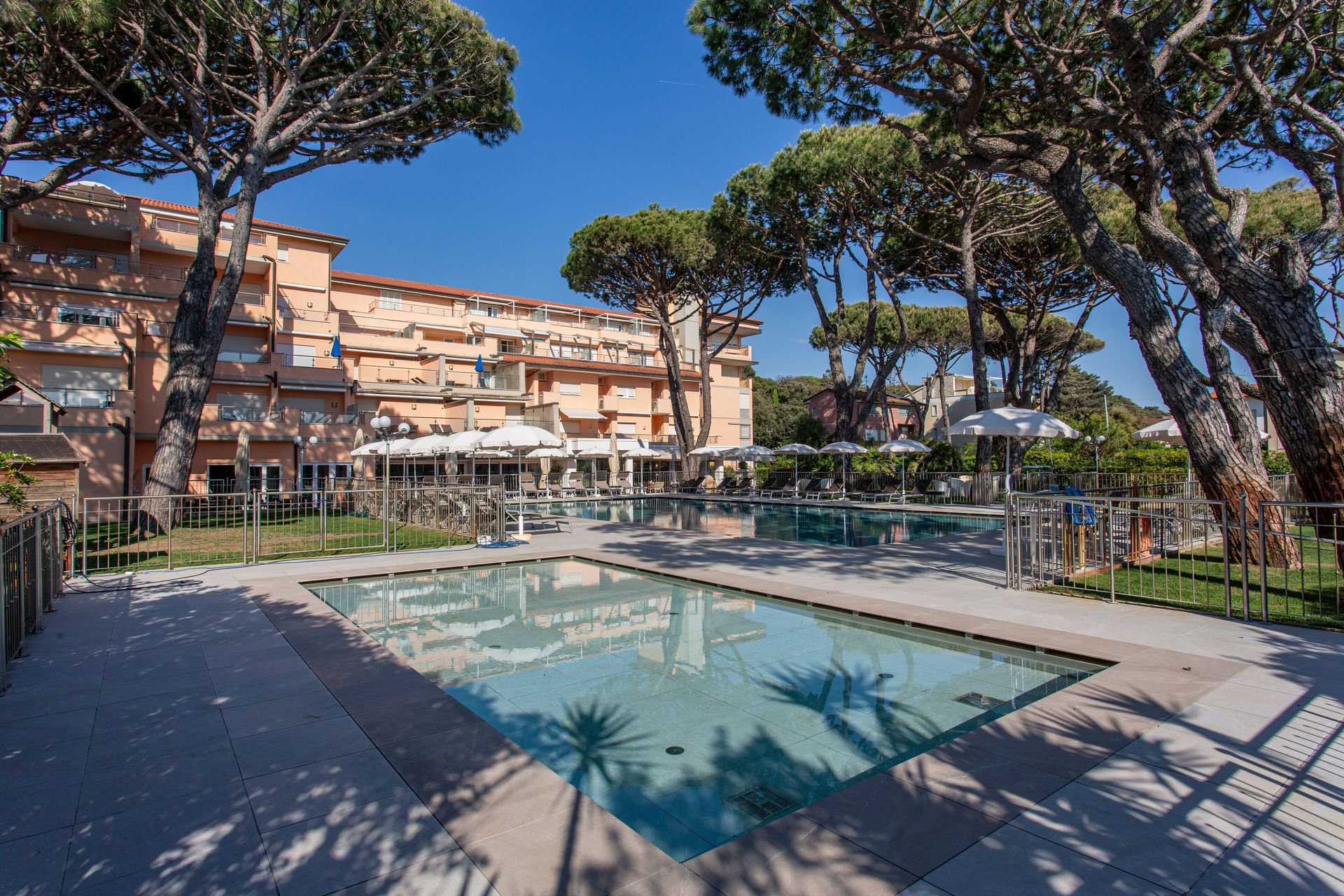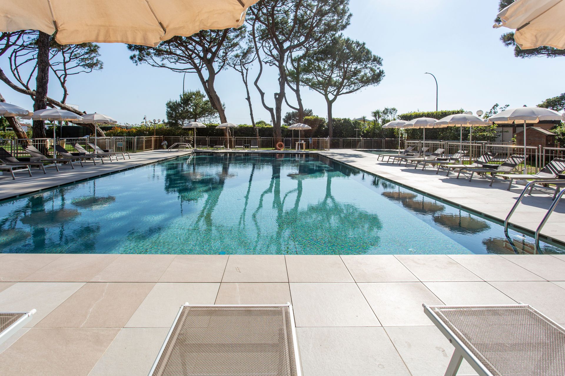 Ad ogni ospite sono riservati ombrellone, sdraio e teli, nonché il servizio di un bagnino che si occupa di ogni esigenza degli ospiti a bordo vasca, il periodo d’apertura va da maggio a settembre.